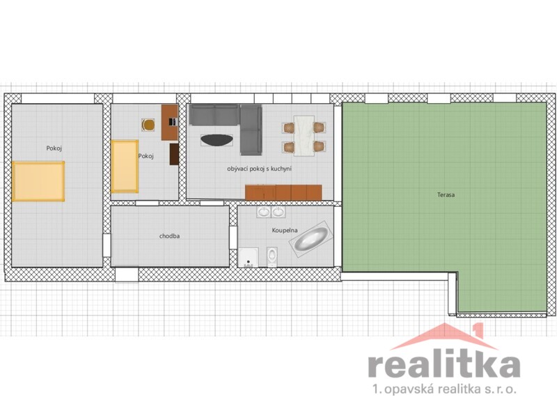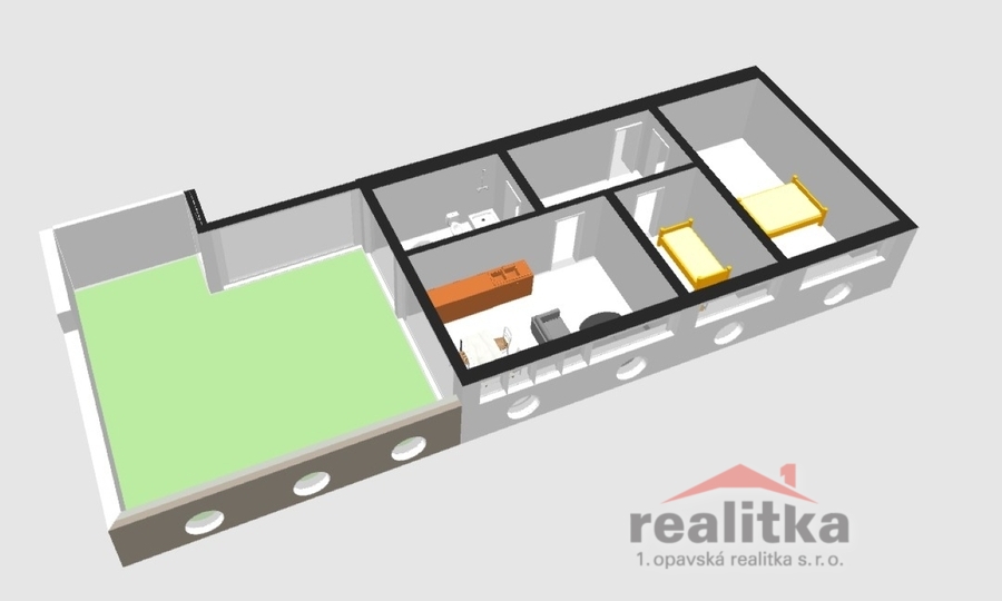 - obrovská terasa 60 m² – největší v centru Opavy, ideální na