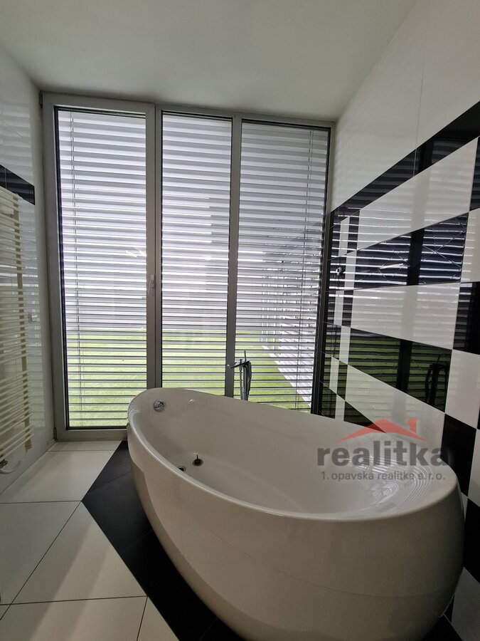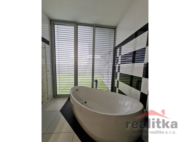 - velká koupelna s vanou, sprchovým koutem a WC a přístupem na terasu.