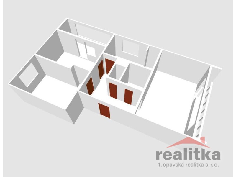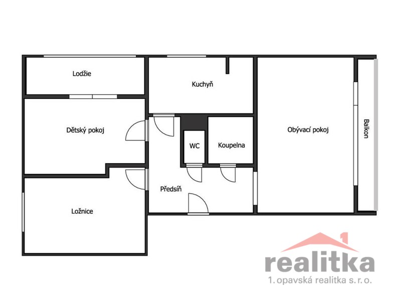 Součástí bytu je předsíň, kuchyň, obývací pokoj, ložnice, dětský
