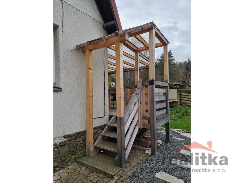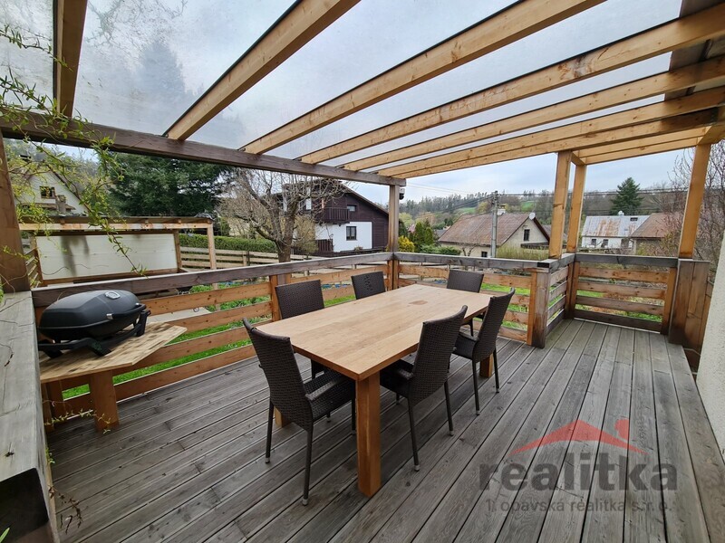 Z obývacího pokoje je vstup na novou dřevěnou zastřešenou terasu. Další