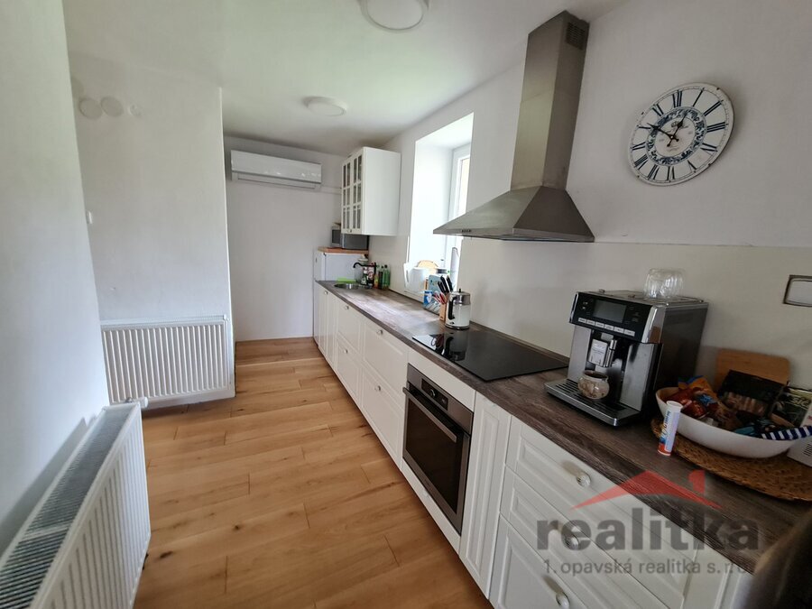 horkovzdušnou troubou a digestoří. V přízemí jsou nové dřevěné