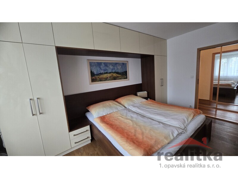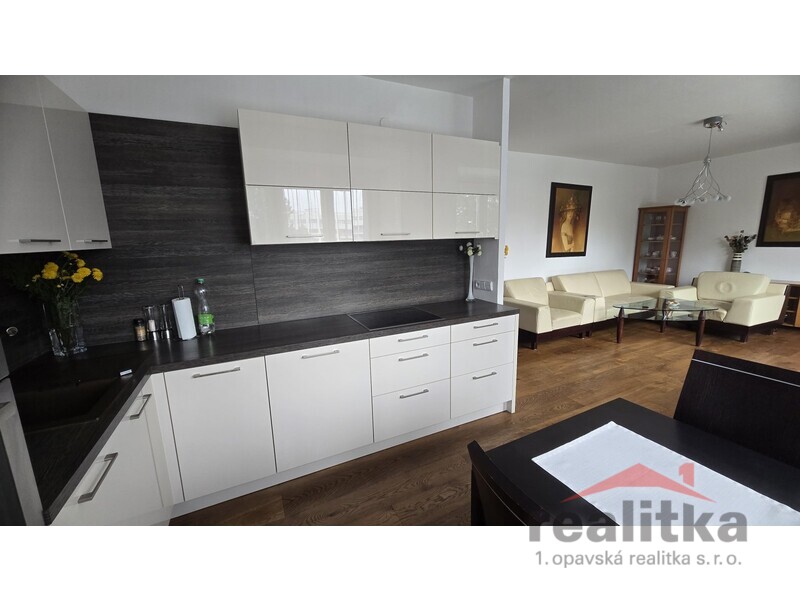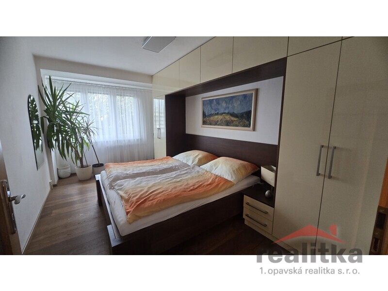 Nabízíme prodej krásného bytu 3+1, 70m2, s balkónem v Opavě na ul. Edvarda Beneše. Byt se nachází ve 3. patře panelového domu s výtahem. Dům je po celkové revitalizaci, je bezbariérový. Na domě není žádný revitalizační úvěr, FO je ve výši 894,–kč. Byt je po celkové, velmi kvalitní rekonstrukci. Majitelé odstranili stěnu mezi obývacím pokojem a kuchyní a vznikl krásný, vzdušný otevřený prostor. V celém bytě je nová elektřina, dřevěné kvalitní podlahy, masivní obložkové interiérové dveře, bezpečnostní vchodové dveře, plastová okna. V předsíni, pokoji a ložnici jsou vestavěné skříně, skříňky a manželská postel. Vše v bytě zůstává. Kuchyň je krásná, moderní, je zde zabudovaná elektrická trouba, presovač na kávu, myčka, indukce, odsávač par, lednice s mrazákem. Z obývacího pokoje je vstup na balkón. V koupelně je rohová vana, umyvadlo, napojení na pračku i sušičku. Wc je zvlášť. K bytu náleží sklepní kóje. Zájemci o prohlídku dle domluvy s paní Gratzovou.
