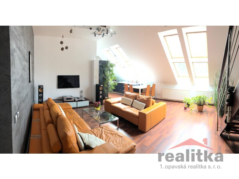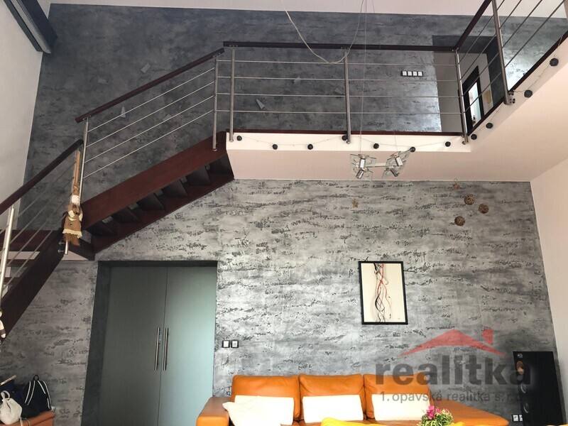 Nabízíme prodej krásného mezonetového bytu 3+kk, 130m2 v Opavě na ul. Nákladní. Byt se nachází ve 2. patře cihlového domu bez výtahu. Byt prošel v letech 2005 a 2006 rekonstrukcí. Ve spodní části bytu je prostorná předsíň s vestavěnými, prosklenými skříněmi po celé délce chodby, koupelna s rohovou vanou, umyvadlem, wc, napojením na pračku a s prostorem na sušičku. Z předsíně se vchází přes prosklené, mléčné, zasouvací dveře do obývacího prostoru s kuchyní. Byt je krásně slunný. V obývacím pokoji jsou designové betonové stěrky, bude zde velká rohová, kožená sedačka do tvaru L. Kuchyň je v moderním černém designu. Je zde zabudovaná lednice s mrazákem, myčka, digestoř, varná deska s troubou. V celém bytě jsou laminátové podlahy. Přes dřevěné schodiště s moderním kovovým zábradlím se vstupuje do mezonetového patra, kde je otevřená pracovna, velká ložnice, dětský pokoj a druhá koupelna se sprchovým koutem, umyvadlem a wc. Nad schodištěm a v ložnici jsou opět moderní betonové stěrky se zabudovanými světly a prosklené, mléčné dveře do pokojů a klimatizace. V koupelně je umístěný plynový kondenzační kotel. V pokojích a spodním patře jsou velká dřevěná okna. V celém bytě je hodně světla. K bytu náleží zahrada, kde je pergola i možnost parkování. Vchod na zahradu je přes zadní dveře domu nebo přes uzamykatelnou bránu. K bytu náleží velký sklep 17m2. V blízkosti domu je veškerá občanská vybavenost. Zájemci o prohlídku dle domluvy s paní Gratzovou.