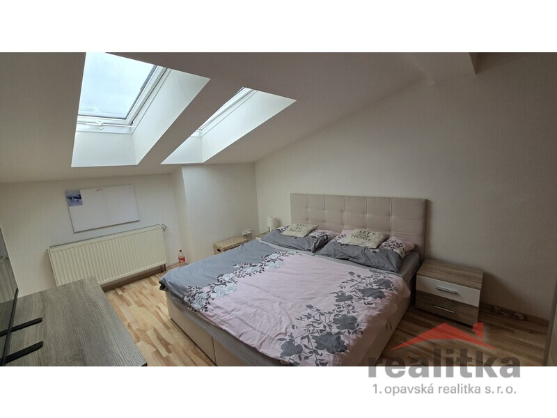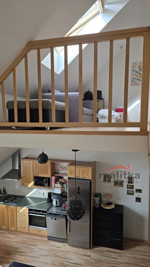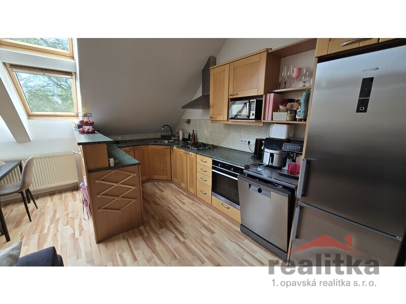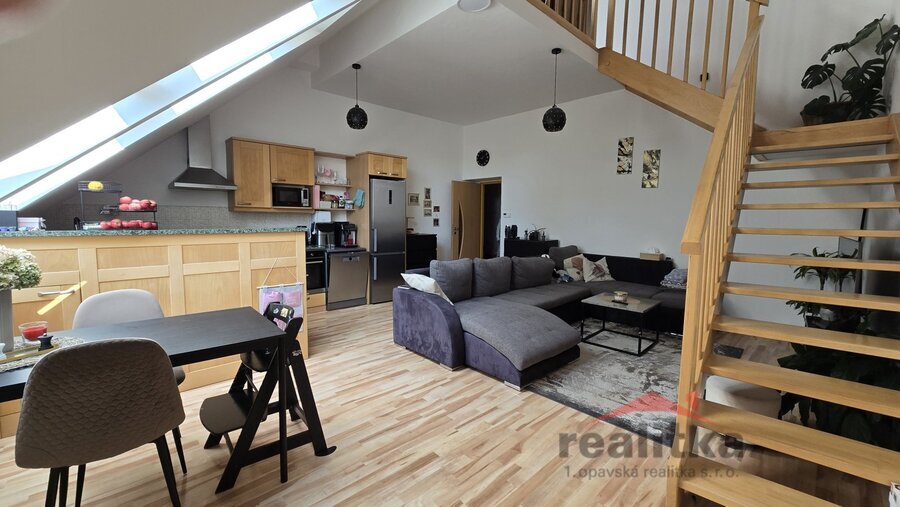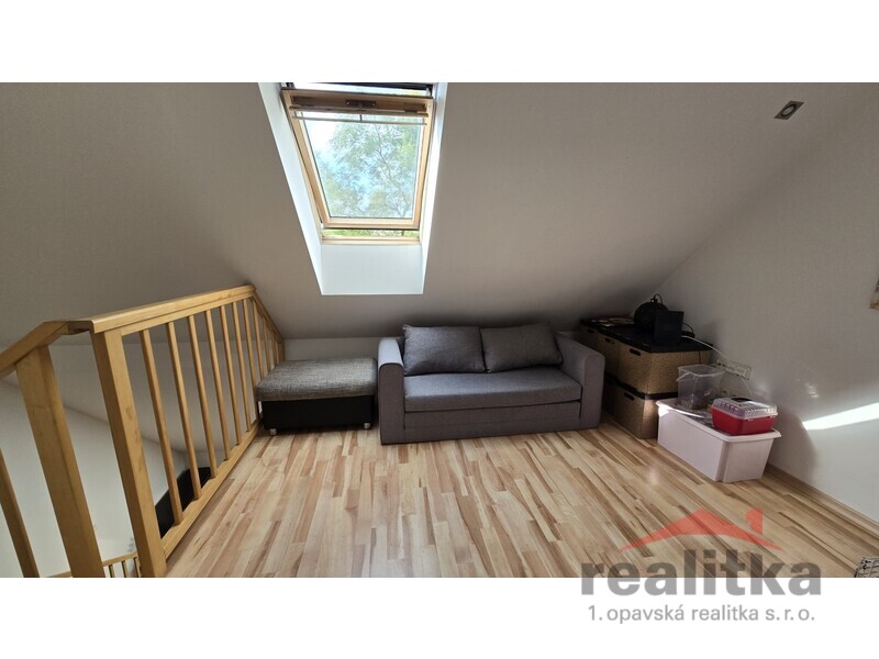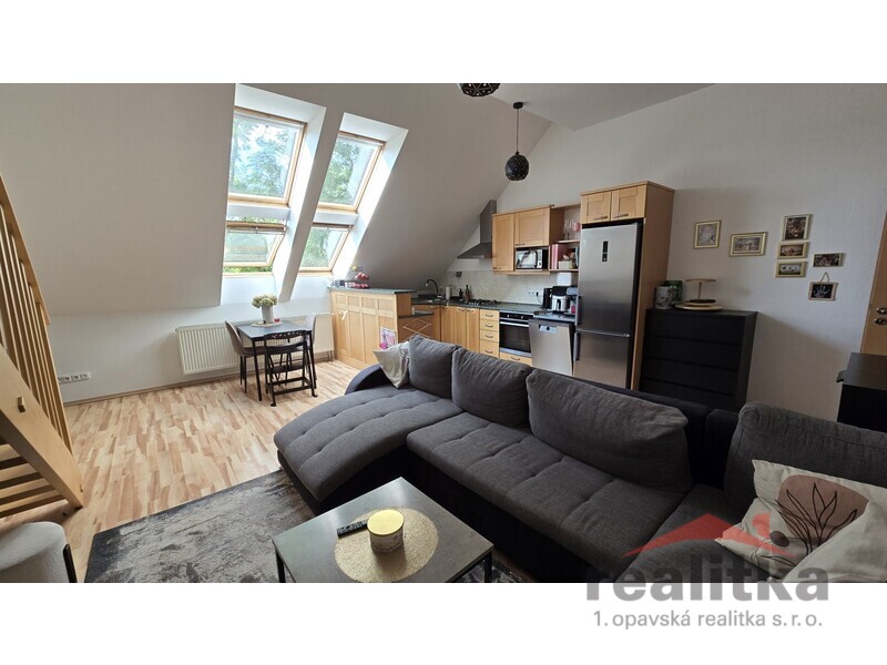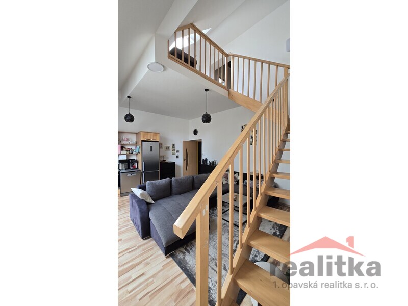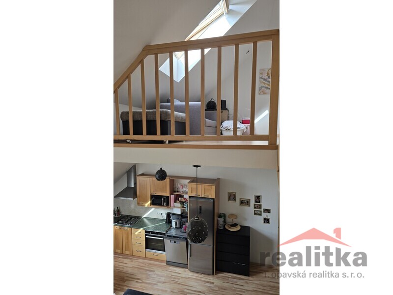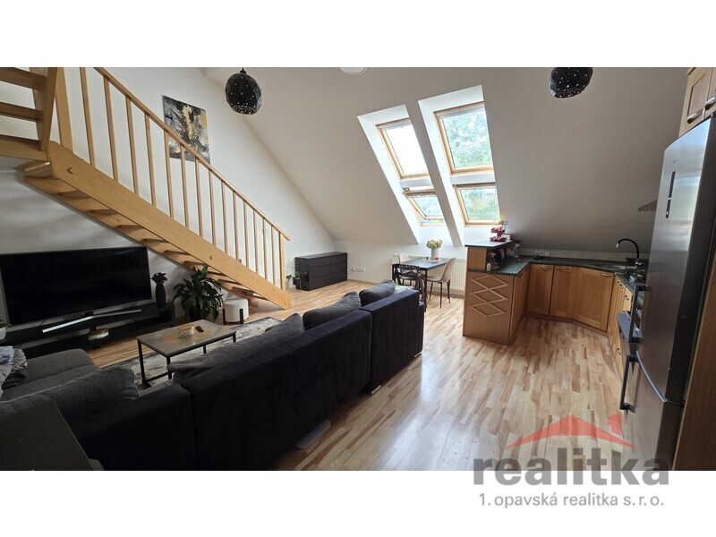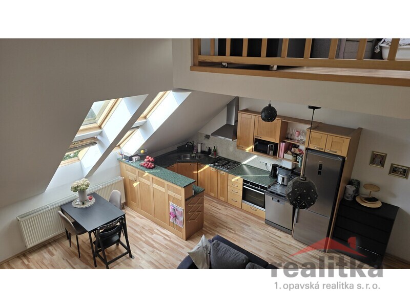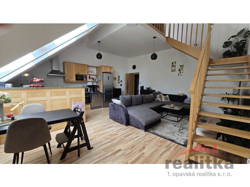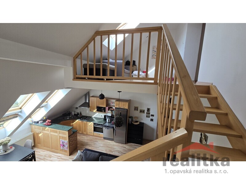 Nabízíme prodej velkého mezonetového bytu 3+kk, 98m2 v Opavě na ul. Nákladní. Byt se nachází ve 2. patře cihlového domu bez výtahu. Ve spodní části bytu je prostorná koupelna s vanou, umyvadlem a wc, předsíň se zabudovanou šatní skříní, velký obývací pokoj s kuchyňskou koutem. Celá spodní část je krásně slunná a vzdušná. Ze spodního patra vede dřevěné schodiště do mezonetové části, kde jsou vybudované 2 ložnice se střešními okny, druhá koupelna se sprchovým koutem, umyvadlem a wc. Nad schodištěm je prostor pro otevřenou pracovnu. Je zde také zabudovaná klimatizace. Celý byt je vytápěn vlastním plynovým kotlem, který je i na ohřev vody a je umístěný v horní koupelně. Za domem je zahrada s pergolou ke společnému užívání. Vchod je přes zadní dveře domu nebo přes uzamykatelnou bránu. Je zde také možnost parkování. K bytu náleží vlastní sklep o velikosti 17m2. V blízkosti domu je veškerá občanská vybavenost. Zájemci o prohlídku dle domluvy s paní Gratzovou.