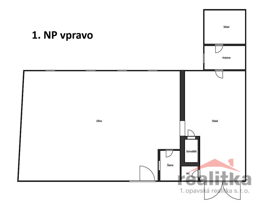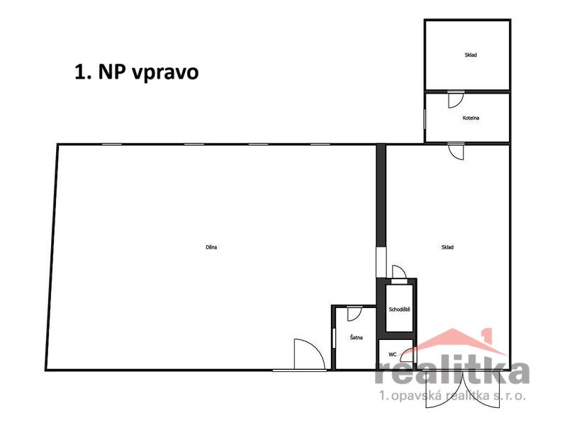 Prostorná dílna se skladem, šatnou, WC se sprchou, kotelnou a dalším skladovým prostorem. Aktuálně využíváno jako truhlářská dílna. Tato část budovy je částečně podsklepena.