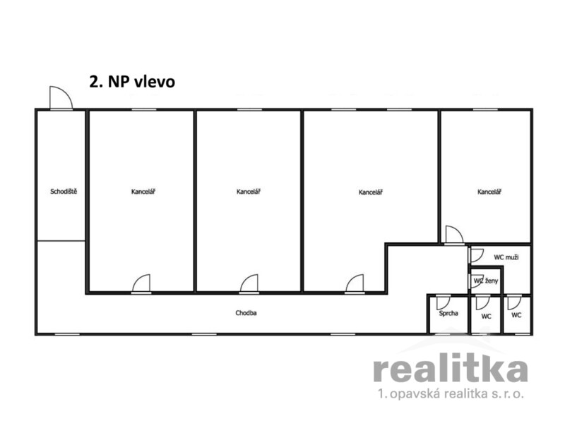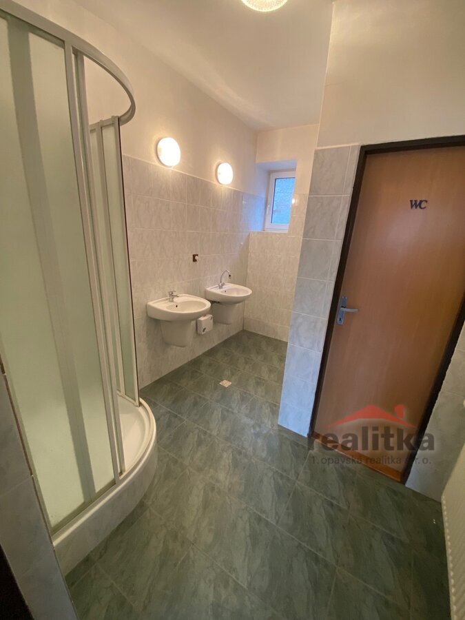 Administrativní zázemí: 4 samostatné kanceláře, chodba s kuchyňkou, sociální zařízení (WC muži, WC ženy) a místnost se sprchou.