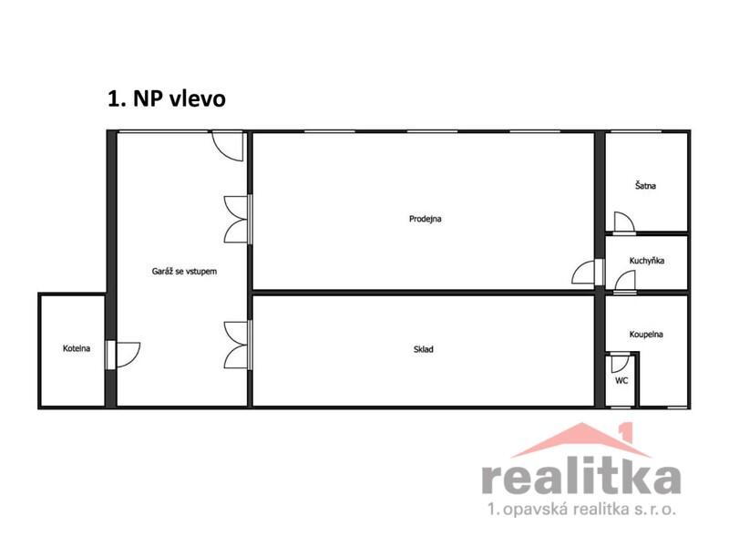 Obchodní jednotka sestávající z prostorné prodejny, kanceláře, kuchyňky, koupelny, WC, skladu, garáže a kotelny.