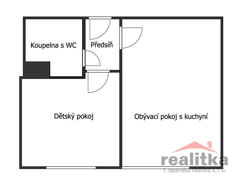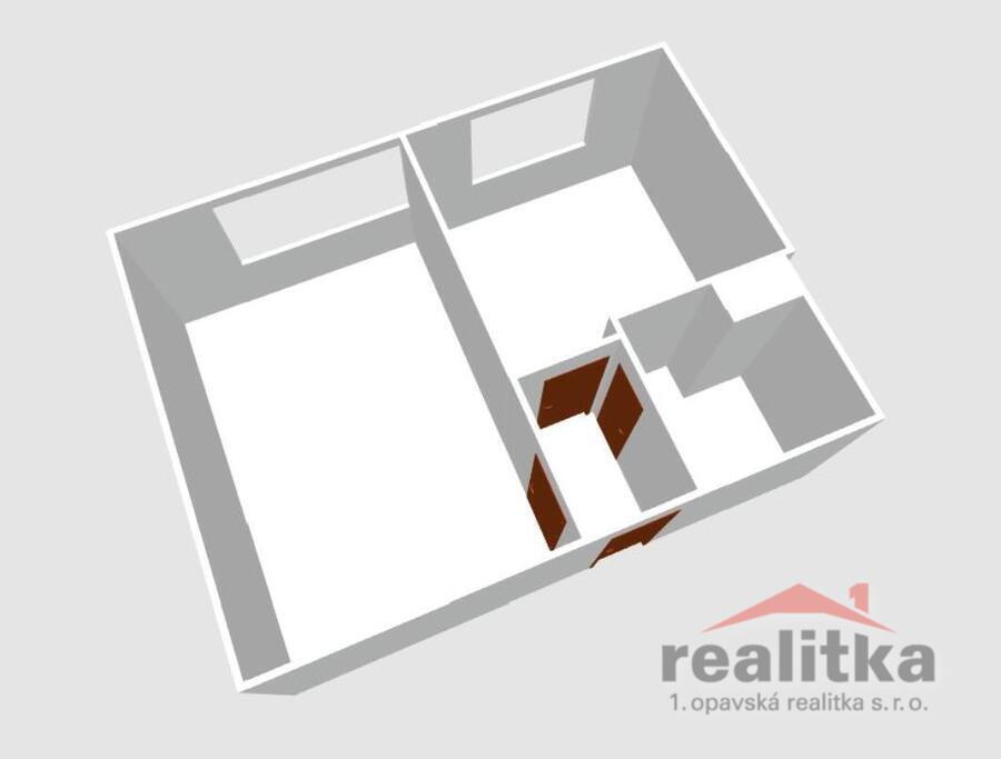 Dispozice bytu zahrnuje předsíň, obývací pokoj s kuchyňským koutem,