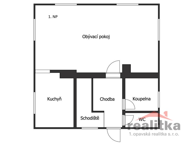 V přízemí se nachází vstupní předsíň, prostorný obývací pokoj,