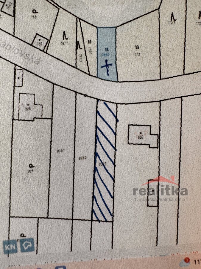šířka 11 m) v Dolních Životicích. V ceně je zahrnut i pozemek přes