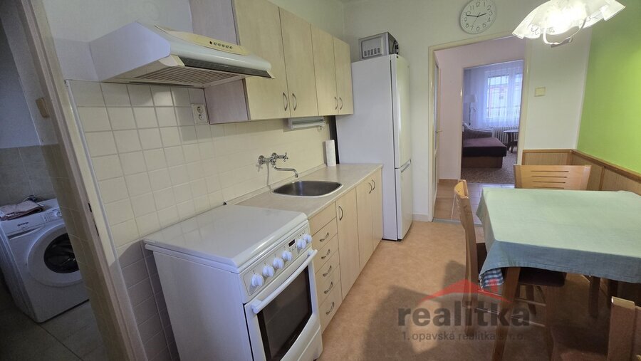 vybaven nábytkem, který zde zůstává. Z kuchyně se vchází do koupelny,