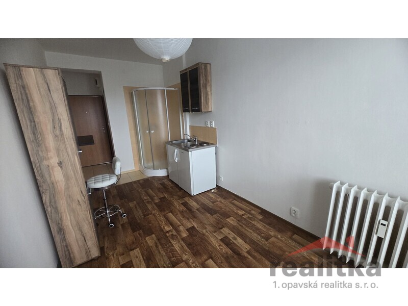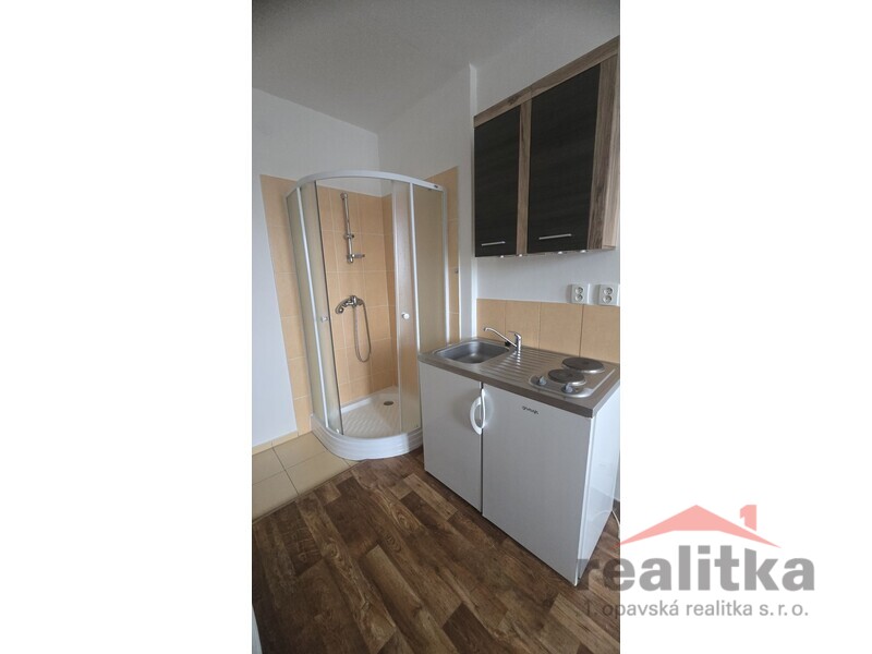Nabízíme pronájem bytu 1+kk, 14m2 v Opavě na ul. Haškova. Byt se nachází v 5. patře panelového domu se 2 výtahy. Byt prošel před cca před 10 lety celkovou rekonstrukcí. Je zde nová elektřiny, v předsíni je dlažba, v pokoji je PVC, sprchový kout, kuchyňský pult s lednicí, skříňkami a jídelní koutek. V koupelně je wc a umyvadlo. Z pokoje je vstup na lodžii. Vstupní dveře jsou bezpečnostní. K bytu náleží sklepní kóje s vchodovými dveřmi s fabkou. Nájem je stanoven na 5.500,–kč, služby 1.000,–kč, elektřina 500,–kč. Kauce je 11.000,–kč. Zájemci o prohlídku dle domluvy s paní Gratzovou.