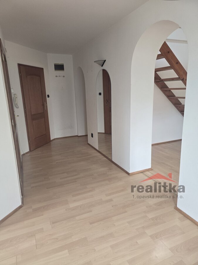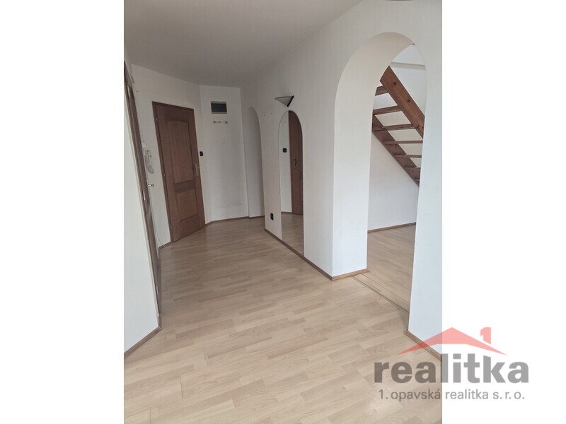 Nabízíme pronájem mezonetového bytu 3+1 v Opavě na ul. třída Spojenců. Byt se nachází ve 3. patře cihlového domu v těsné blízkosti parku. Byt je v udržovaném stavu. Byt není vhodný pro rodinu s dětmi. Spodní patro se sestává z velké kuchyně, ze které se vchází do obývacího pokoje. Z předsíně je pak vstup do dalšího pokoje a koupelny, kde je vana, umyvadlo, sprchový kout, wc, pračka a plynový kotel na vytápění a ohřev vody. Z obývacího pokoje vedou schody do horního otevřeného patra s úložným prostorem. Nájem je stanoven na 13000,–kč, služby a inkaso 4000,–kč, kauce je 26000,–kč, provize rk 13000,–kč. Zájemci o prohlídku dle domluvy s paní Gratzovou.