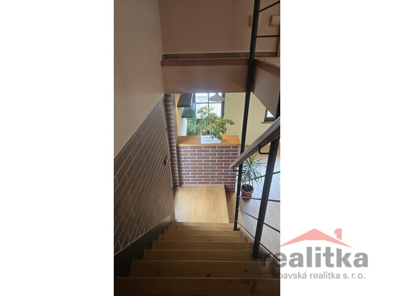 schodiště do 1. patra. V této části je obývací pokoj, ložnice,