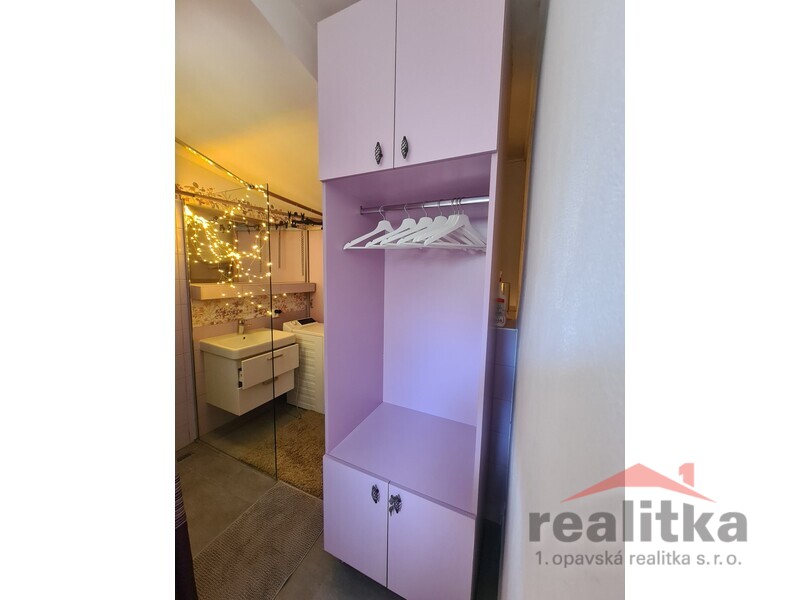 Nabízíme pronájem hezkého, zařízeného bytu se zahradou 1+kk v Opavě na ul. Zacpalova. Byt se nachází v přízemí cihlového domu. Byt je situovaný do zahrady, která je k užívání a s posezením. Byt je zařízený. Je zde kuchyňská linka, lednice, sedačka, stůl. Z pokoje se vchází do koupelny s předsíňkou, kde jsou úložné prostory. V koupelně je sprchový kout, umyvadlo, wc, pračka. Byt je vhodný pro slečnu, ženu, jelikož je zařízený a vymalovaný v růžových tónech. K bytu není sklep. Nájem je stanoven na 7000,–kč, inkaso a služby do 3000,–kč, kauce je 20000,–kč, provize rk 7000,–kč.