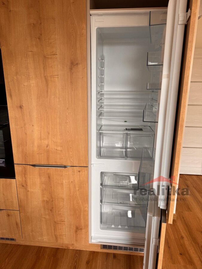 vybavenou kuchyňskou linkou. Z obývací části vede vstup na terasu