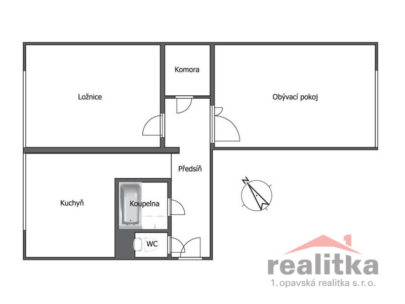 Dispozice bytu: vstupní předsíň, koupelna s vanou, samostatné WC, kuchyň