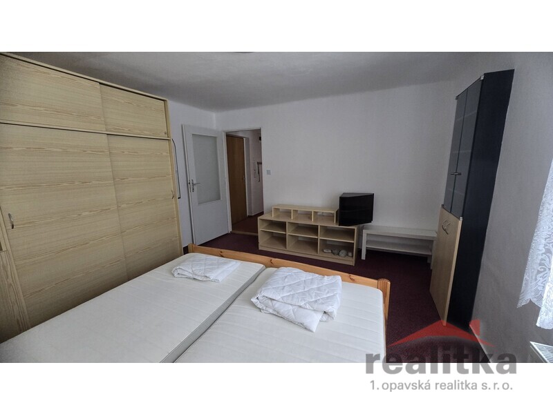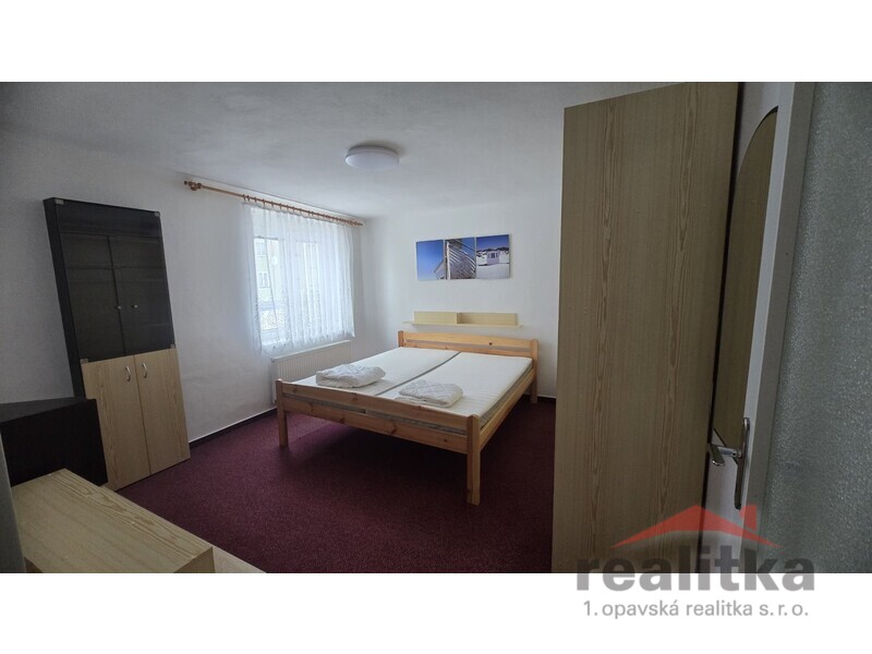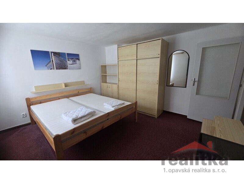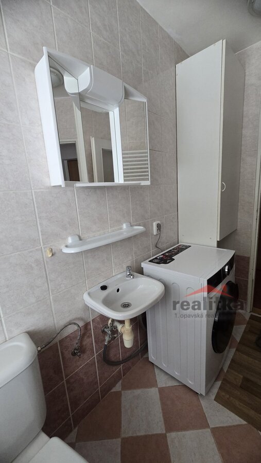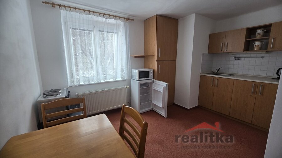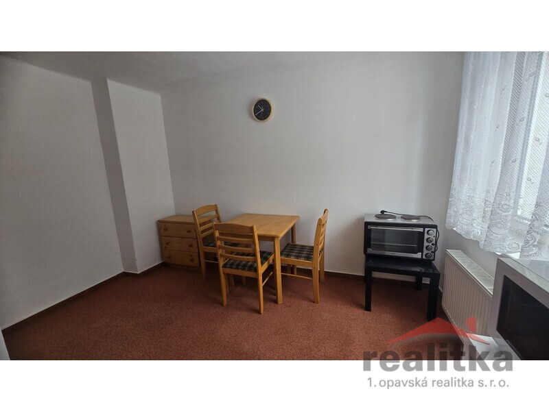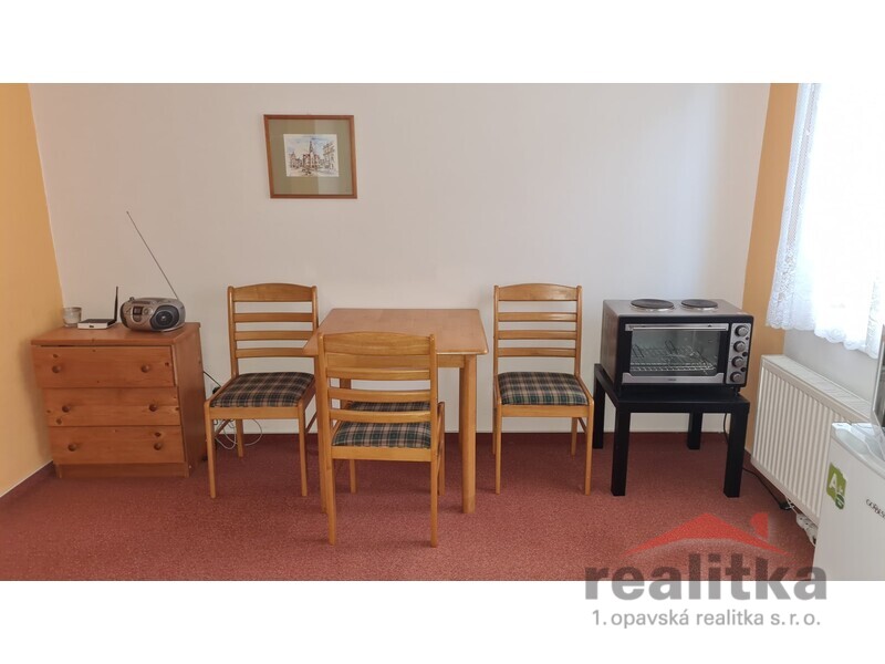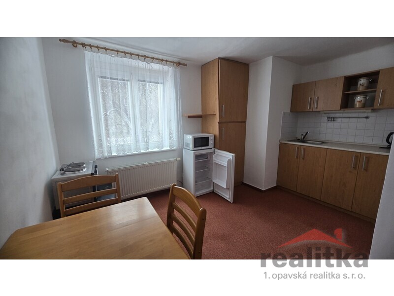Nabízíme pronájem zařízeného bytu 1+1, 35m2, v Opavě na ul. Těšínská. Byt se nachází ve zvýšeném přízemí cihlového domu bez výtahu. Byt je hezký. Je zde větší kuchyň, samostatný pokoj a koupelna se sprchovým koutem, umyvadlem s koupelnovými skříňkami a wc. Vše co je na fotografiích v bytě zůstává – lednice, rychlovarná konvice, vařič, elektrická trouba, jídelní stůl se židlemi, komoda, nová pračka se sušičkou, manželská postel, šatní skříň, koberce… Nájem je stanoven na 7700,–kč, elektřina 2600,–, voda 400,–kč, úklid domu a ostatní 300,–kč, kauce je 22.000,–kč, provize rk 7700,–kč. Byt je volný ihned. Majitel má zájem o dlouhodobý pronájem. Zájemci o prohlídku dle domluvy s paní Gratzovou.